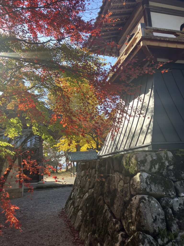 紅葉も所々きれいに色づいて、古い建物とよく調和している。