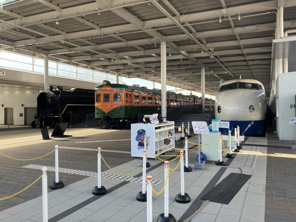 すぐ脇には京都鉄道博物館があり、フェンス越しに鉄の塊(車両)の顔を拝むことができた。