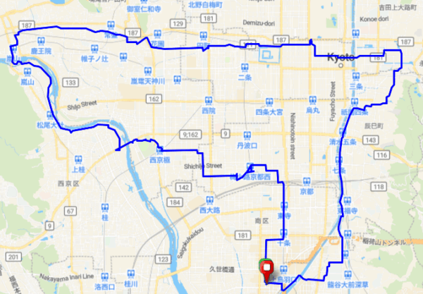深草から住宅街をくねくねと東へ抜け、再び見知らぬ道をサイコンに導かれながら、十三時前に駐車場へと帰還。